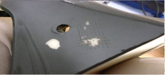 上圖是尼龍素材上噴油百格測試出現局部掉漆問(wèn)題,對于這樣的問(wèn)題推薦客戶(hù)使用尼龍處理水進(jìn)行打底,然后在噴油漆進(jìn)行百格測試。